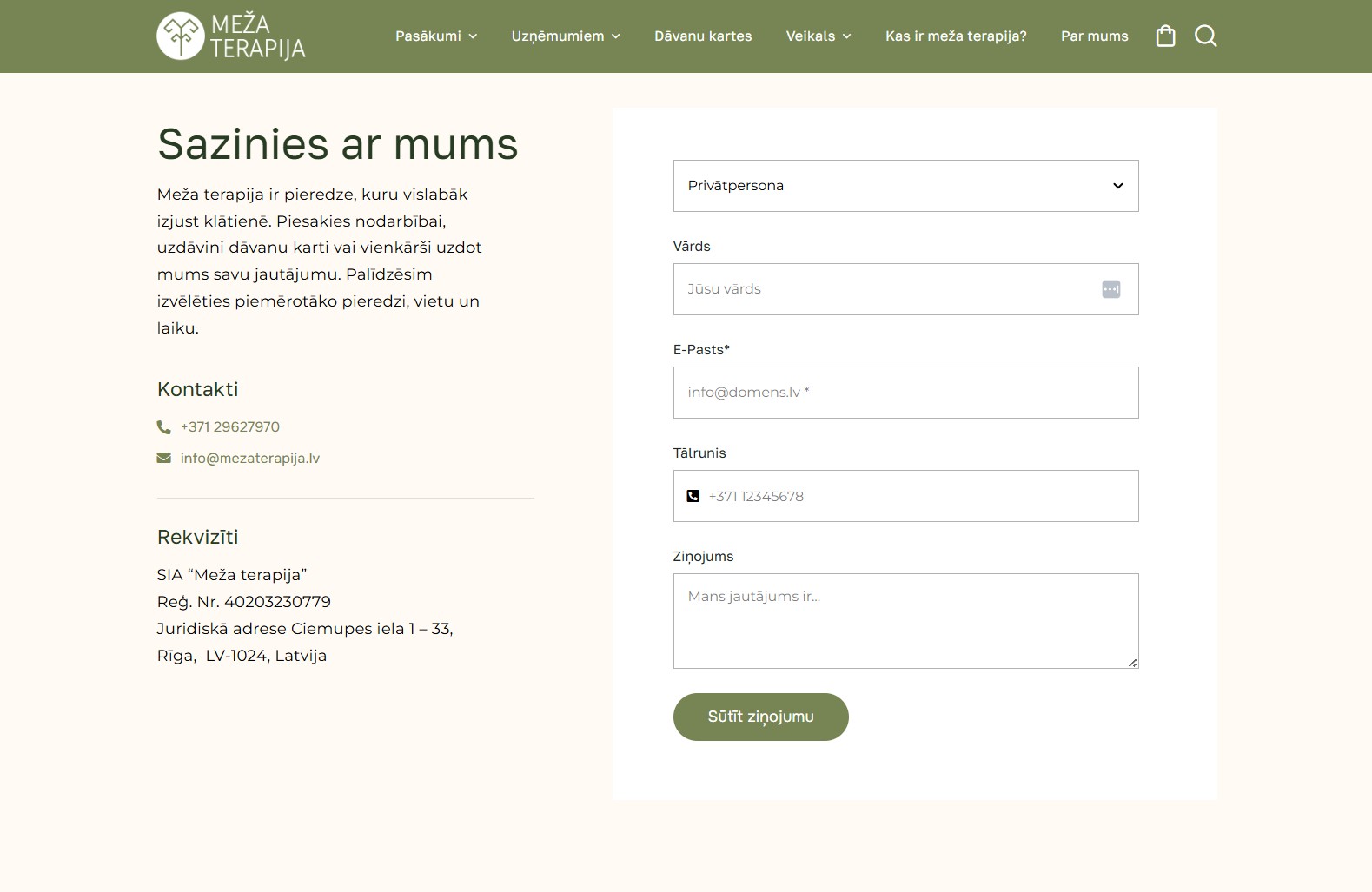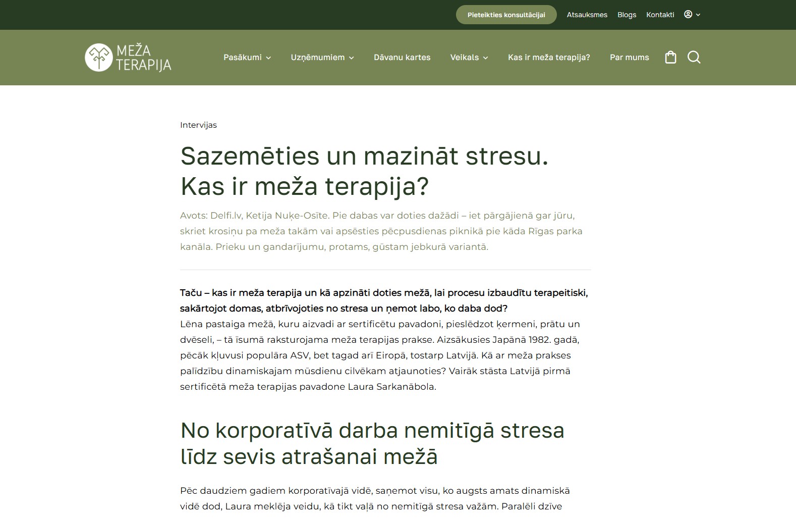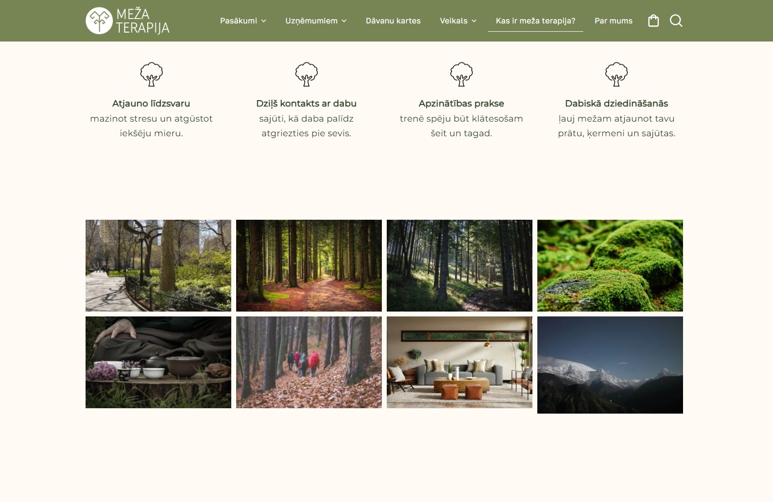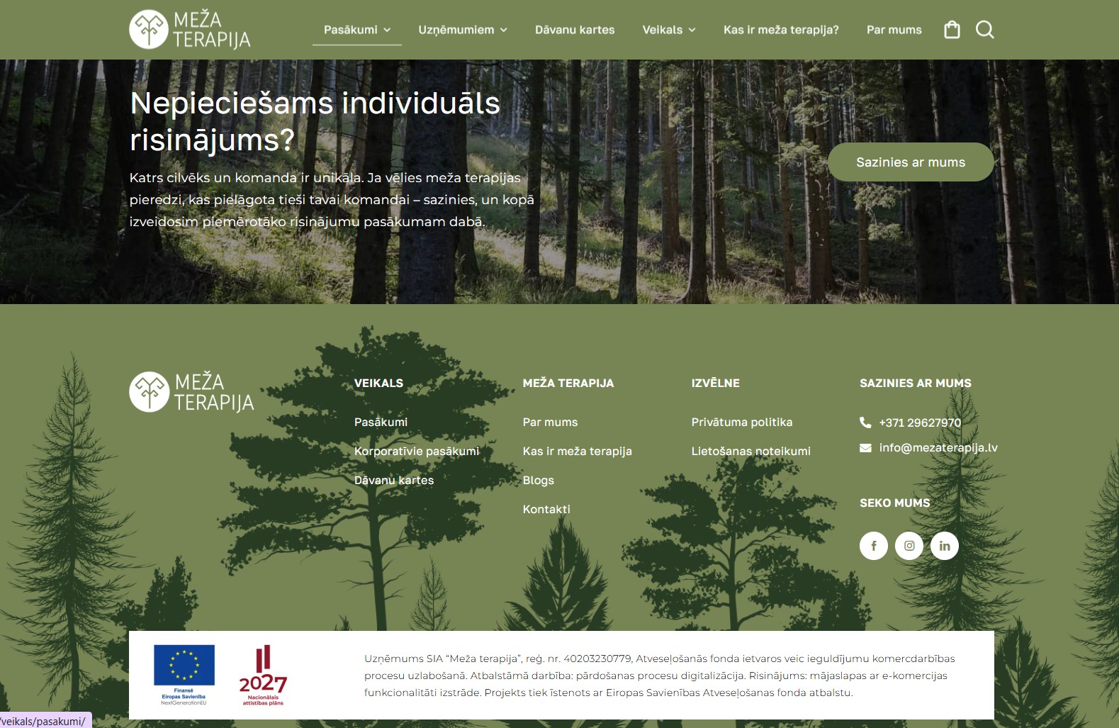 Mājaslapas sākumlapa veidota kā skaidrs un mērķtiecīgs ievads pakalpojumu piedāvājumā, apvienojot estētiku ar funkcionalitāti. Mājaslapas dizainā tika organiski iekļauti koku motīvi, kas rada dabisku noskaņu un pastiprina zīmola vēstījumu un vizuālo identitāti, vienlaikus saglabājot profesionālu un nepārslogotu kopskatu.