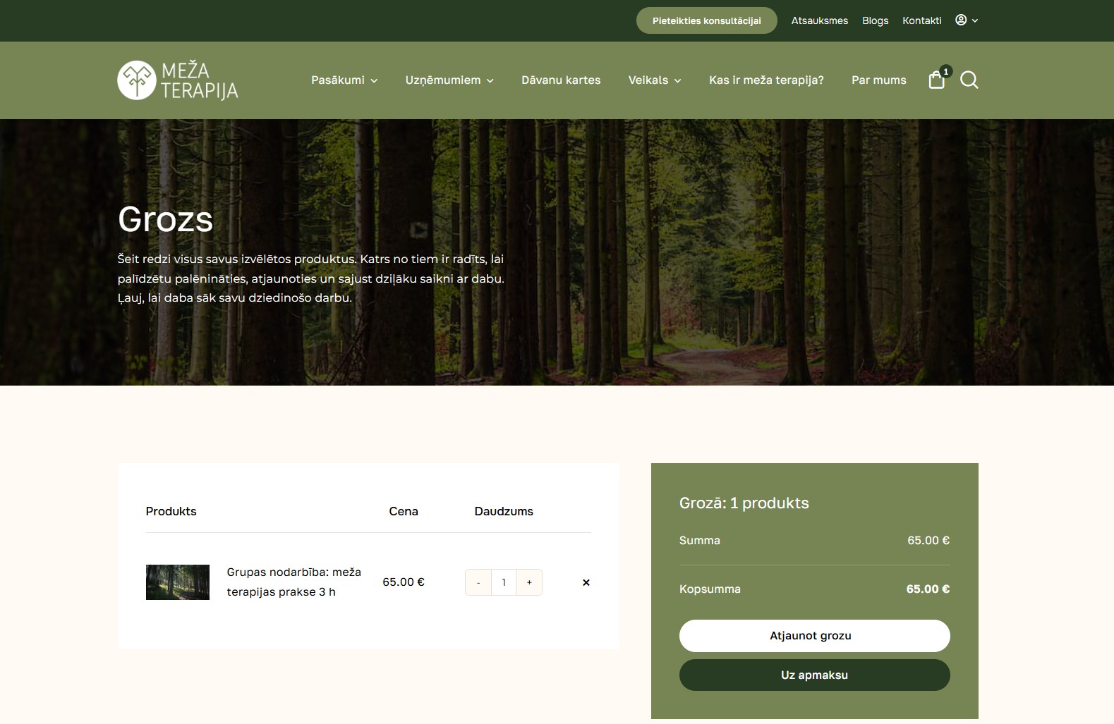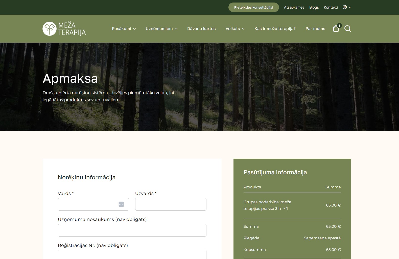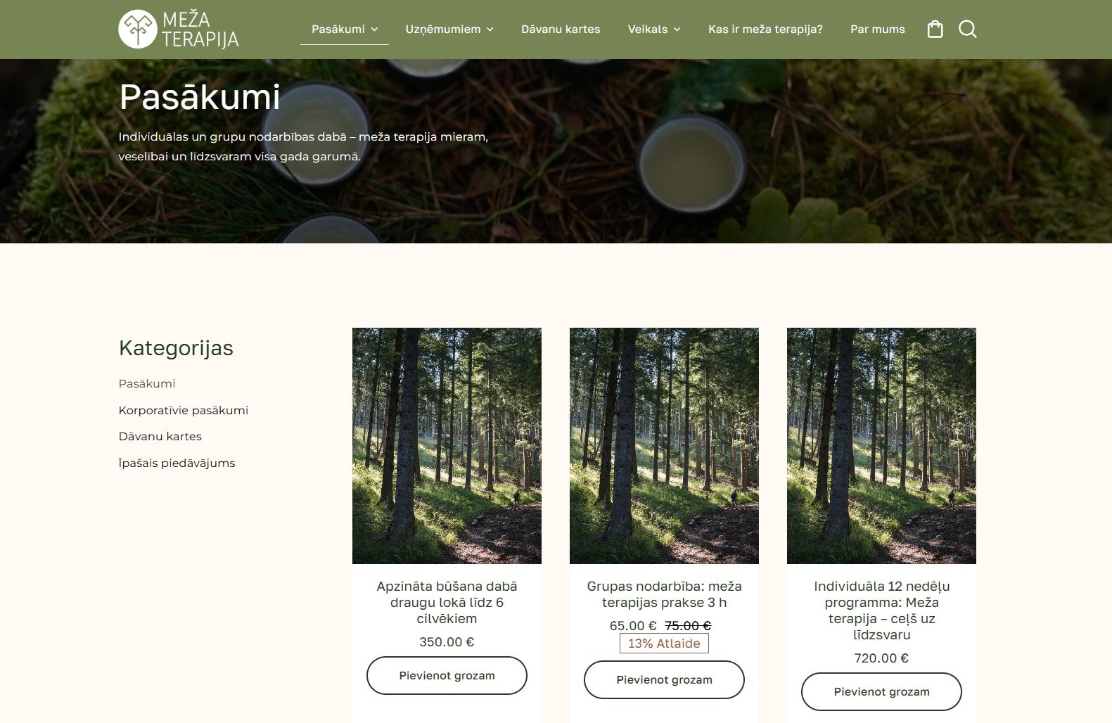 Individuālas un grupu nodarbības dabā ar rezervēšanas un apmaksas iespēju tiešsaistē