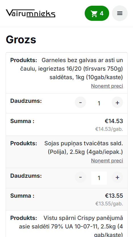 Pārtikas produktu vairumtirdzniecības internetveikals